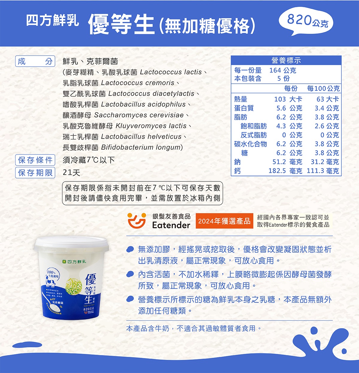 ※本產品含牛奶,不適合其過敏體質者食用。