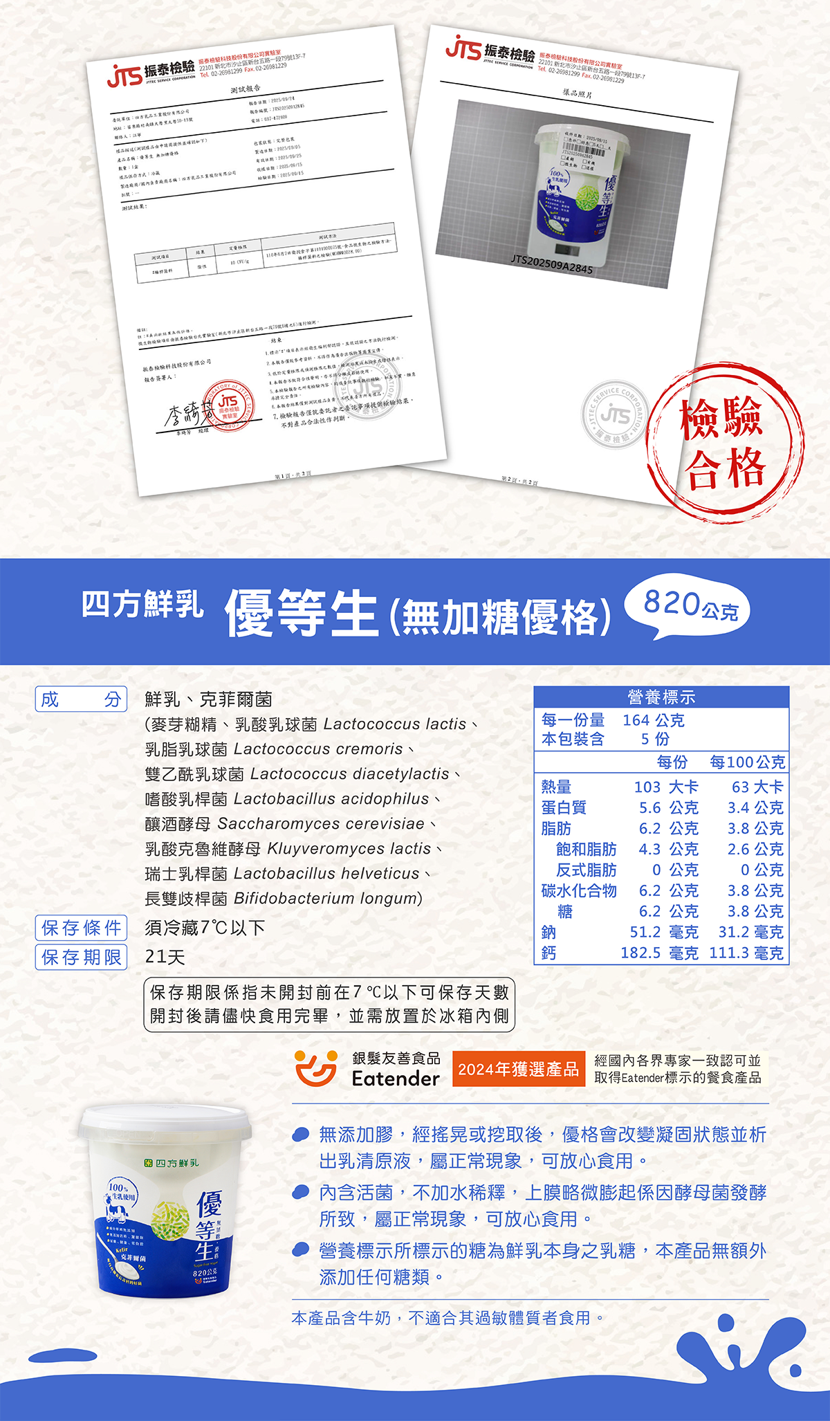 ※無添加膠,經搖晃或挖取後,優格會改變凝固狀態並析出乳清原液,屬正常現象,可放心食用。