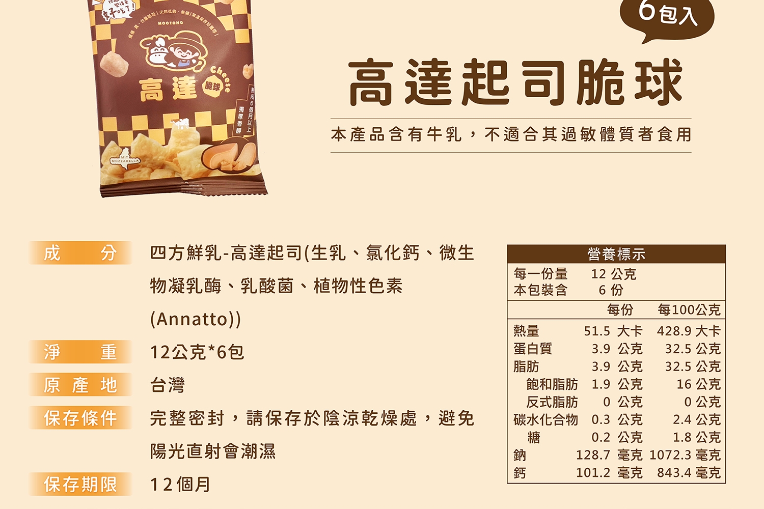 ※本產品含有牛乳,不適合其過敏體質者食用。